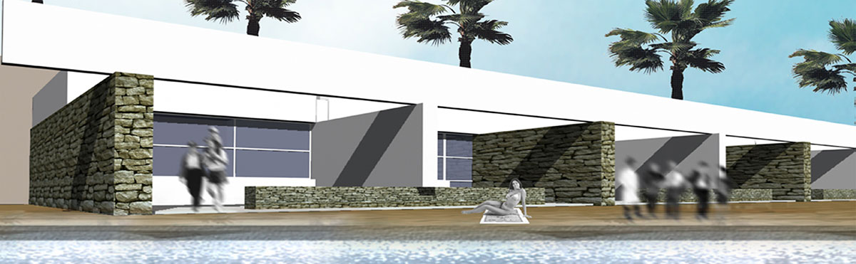 Implanté dans un décaissé existant (4 m par rapport au boulevard) le projet proposé est ancré aux limites du sud, est et ouest du terrain. Si, du fait de son enterrement cet adossement occulte certaines ouvertures, il offre par contre une autre façade à la ville et ses usagers : celle de la toiture. En effet, le traitement particulier de ces toitures est issu d’une forte volonté d’expression de la mémoire du lieu : celle de Tahiti, et de ses toits de chaume qui évoquent les îles, la mer, le plaisir et le bien être. Constituée d’une charpente bois en lamellé collé couverte d’un ensemble de toits de taille et niveaux différents revêtus de chaume artificielle (pour des raisons de maintenance et de sécurité). Cet ensemble, ponctué de dalles jardins plantées avec des essences exotiques, offrira une perception particulièrement attractive et écologique aux passants et usagers.