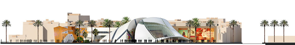 Le pôle culturel et muséal de Dakhla s’appuie sur un programme ouvert et exprime une nouvelle vision de l’équipement culturel contemporain. Sa dimension et sa position stratégique dans la ville de Dakhla lui donne un éclat international, caractérisé par une architecture emblématique. Le choix du site d’implantation permet une exposition importante du musée dans la ville et depuis la mer. Le bâtiment se compose de courbes, de passages, d’ombres et de lumière. Il s’élève dans des lignes qui font référence à une dune de sable. Au-delà du symbole, la forme architecturale et son découpage géométrique créent des espaces qui attirent les visiteurs et leur permettent de vivre une expérience hors du commun. Divers cheminements sont possibles, selon que l’on soit intéressé par les expositions permanentes ou temporaires, par une conférence, un spectacle, une pause café ou seulement par la déambulation dans le musée. Aussi le projet s’inscrit dans une logique écologique de part l’utilisation de matériaux autochtones et durables. En plus de créer un repère dans la ville de Dakhla et d’être à l’origine d’un nouveau maquillage urbain, le musée est un témoignage patriotique comme le dessine l’étoile marocaine qui brille sur son toit.