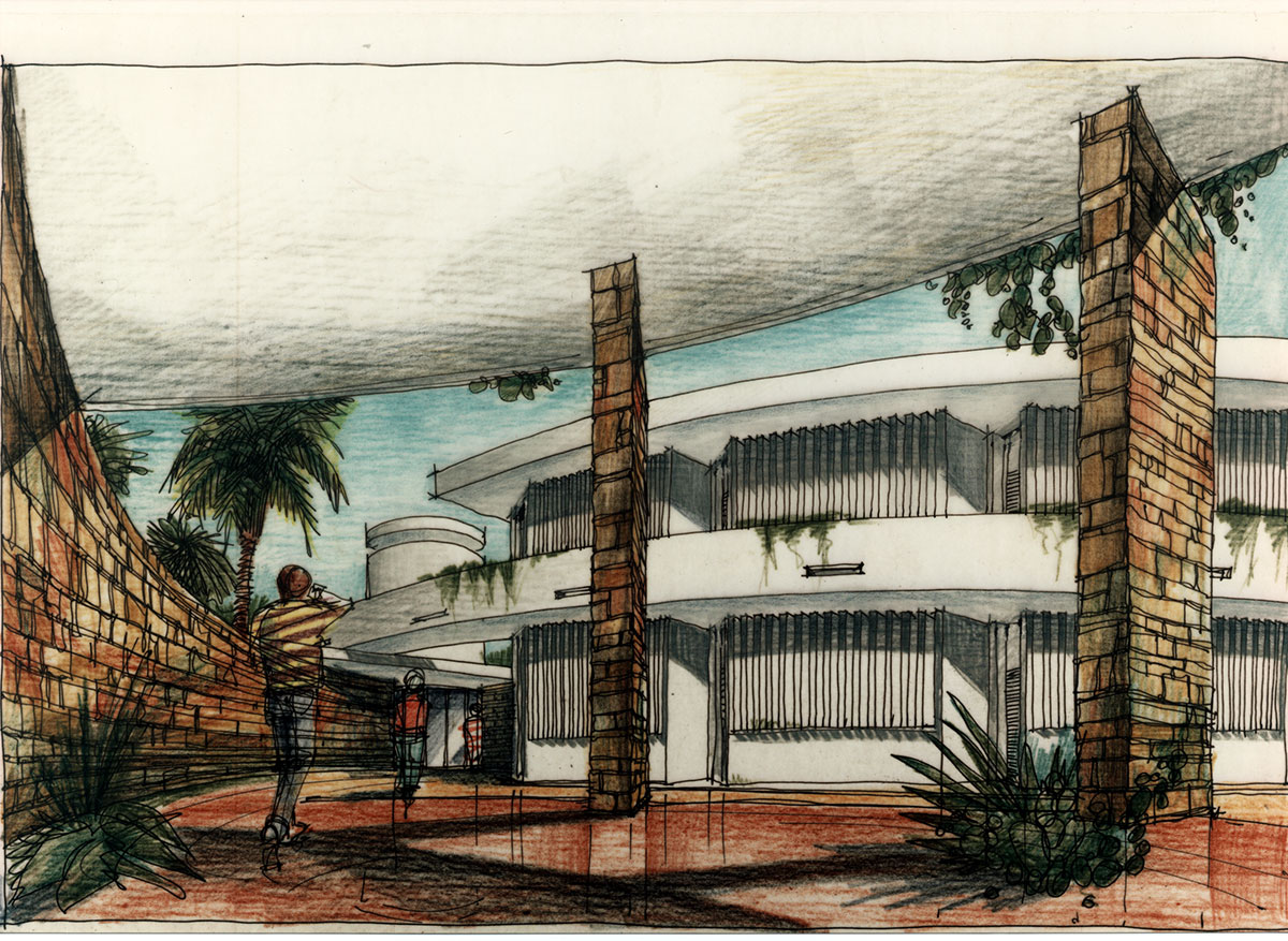Programme : 12 classes, administration, blocs sanitaires, logement directeur, logement concierge, 1 préau,