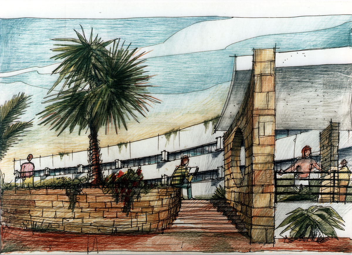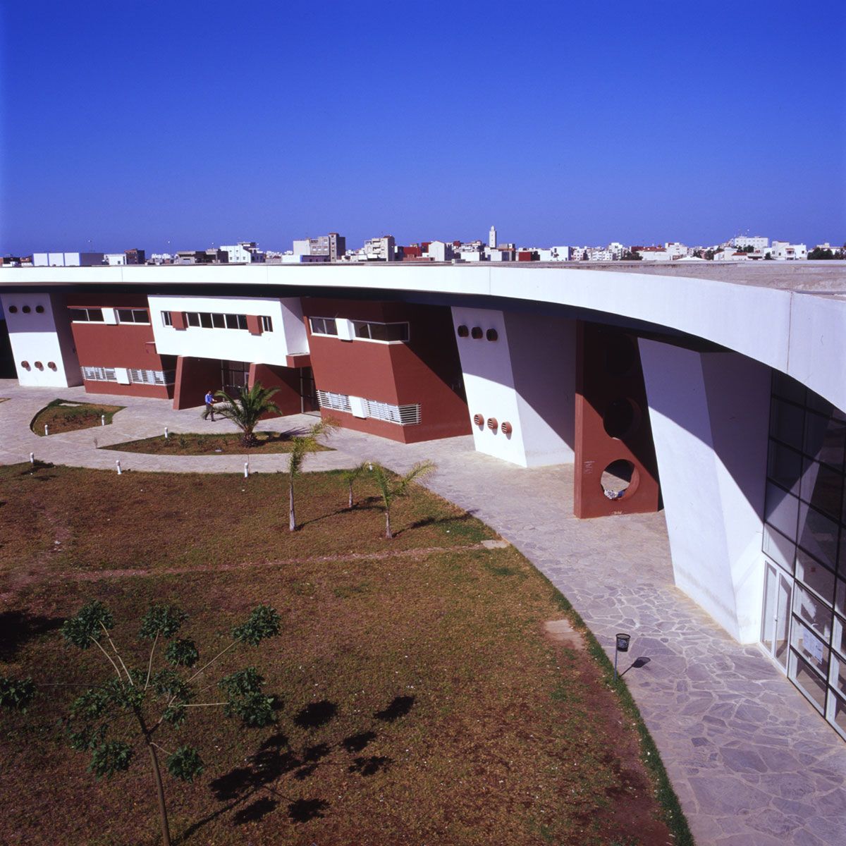 Programme : 10 amphithéâtres (300 et 200 places), 6 classes de cours, 4 salle informatique, bibliothèque, locaux enseignants, administratif, ateliers, magasins, logement gardien, poste transformateur, blocs sanitaires, jardin central, cafétéria.